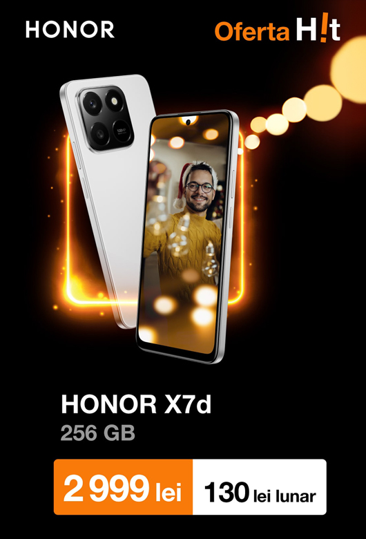 Poți opta și pentru Samsung Galaxy A36 5G, acum cu 1300 lei reducere, disponibil și în rate de la doar 215 lei lunar. Sau comandă HONOR X7d, un smartphone cu baterie puternică și cameră cu AI, acum la doar 2999 lei sau 130 lei lunar.