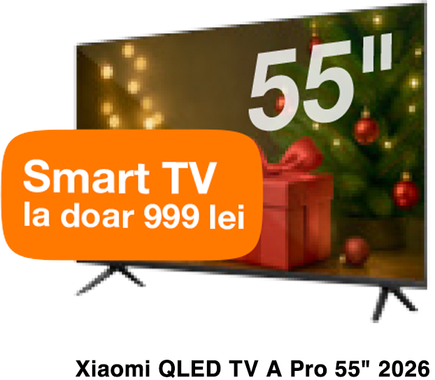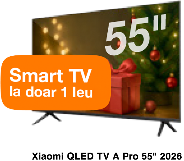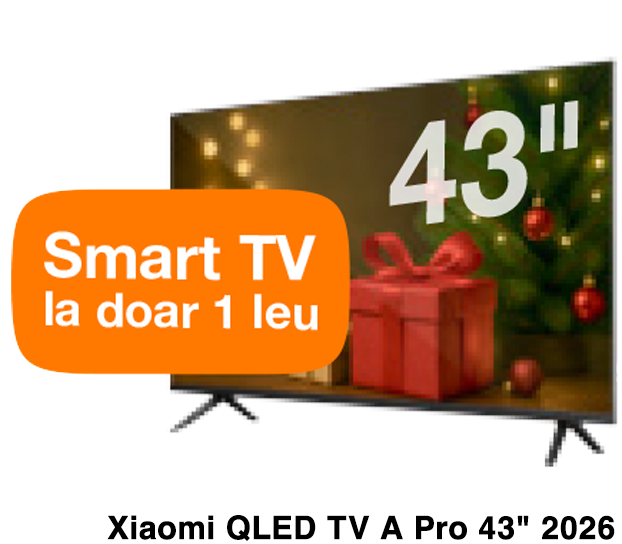 Conectează Fibră și Televiziune de la Orange și ai un Smart TV Xiaomi 43” cadou. Oferta este disponibilă la conectare nouă, în localitățile cu acoperire Fibră de la Orange.