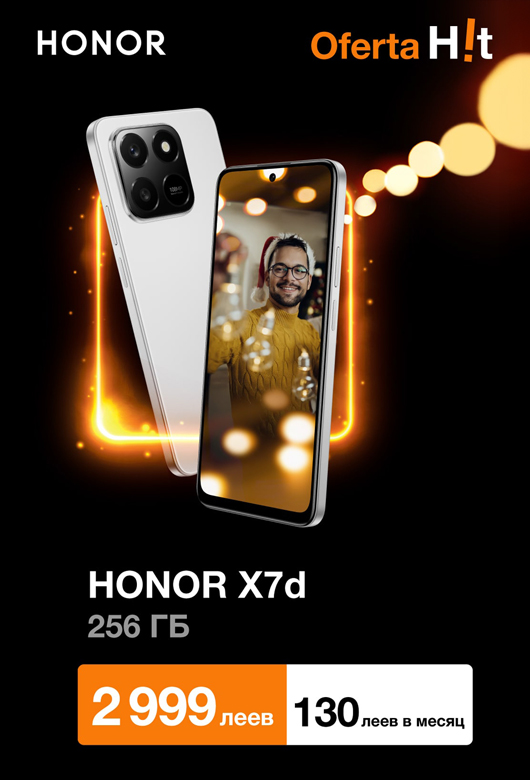 Вы также можете выбрать и Samsung Galaxy A36 5G – сейчас со скидкой в 1300 леев, также доступный и в рассрочку всего за 215 леев в месяц. Либо закажите HONOR X7d – смартфон с мощным аккумулятором и камерой с искусственным интеллектом, сейчас всего за 2999 леев либо в рассрочку за 130 леев в месяц.